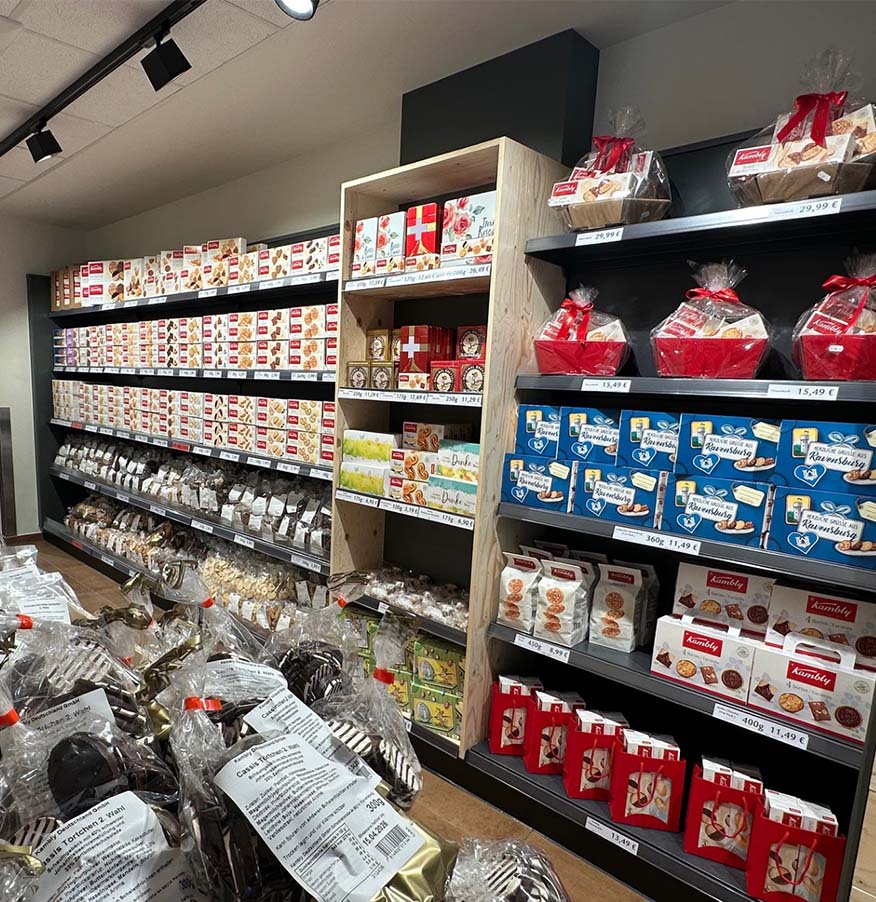 Lassen Sie sich von wechselnden Angeboten unserer Produkte, sowie vieler weiterer süßer Naschereien überzeugen. Bereiten Sie Ihren Liebsten zu Hause eine Freude mit unseren Köstlichkeiten aus Ravensburg.